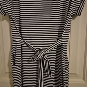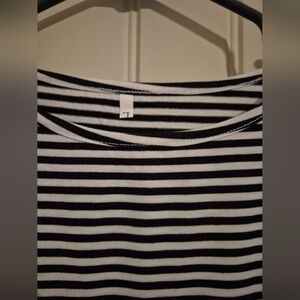 Chic and versatile, this striped black and white dress is perfect for any occasion. Its classic design offers a timeless look.