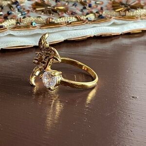 This exquisite gold butterfly ring is adorned with sparkling crystals, perfect for adding a touch of glamour to any ensemble. Ideal for both special occasions and everyday elegance.