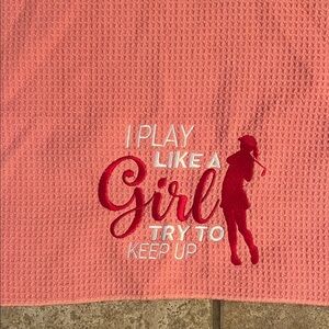 Stylish women's golf towels in black and pink. Perfect for a day on the course.