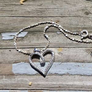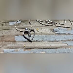 beautiful delicate heart with chip diamonds on sterling silver one flaw not too noticeable