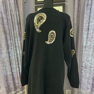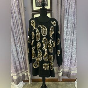 Bold oversized knit sweater with sequins paisley print throughout. Long sleeves. Has shoulder pads. Perfect for pairing with leggings. Vintage, in great condition.
