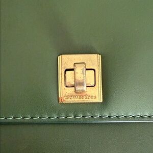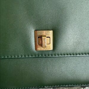 Chic green crossbody bag with a stylish gold chain. Perfect for versatile wear into fall. Good condition with just a bit of tarnish on the metal as pictured and slight imperfections in the leather. Comes with dust bag. Only used a couple times and it sits in the dust bag in closet.