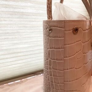 Brand New with tag Longchamp striped crocodile-embossed calf leather tote bag. Purchased at Neiman Marcus.