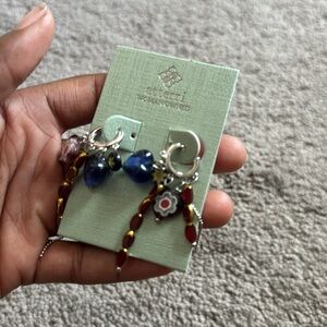 Stylish earrings with blue and red beads. Unique design for a bold look.