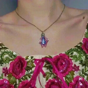 Pink butterfly fairy handmade unique fairycore holographic pendant necklace