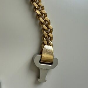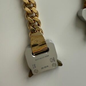 Elegant gold and silver chain bracelet with unique clasp design.