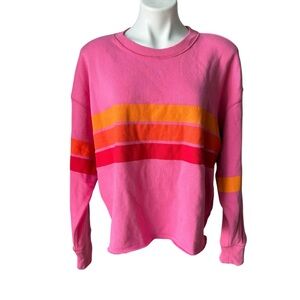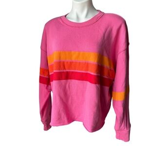 NWT, Aerie Pink Striped Cropped Terry Sweatshirt, Sz L