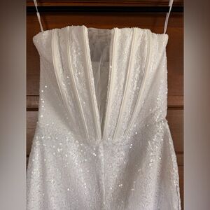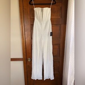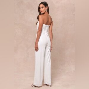 Lulus Glamorous Spirit White Sequin Strapless Bustier Jumpsuit