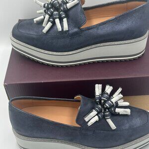 Johnston & Murphy Gracelyn Navy Metallic Tassel Platform Loafer Size 8.5