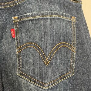 Stylish Levi's boyfriend jeans. Dark blue wash. Comfortable fit.