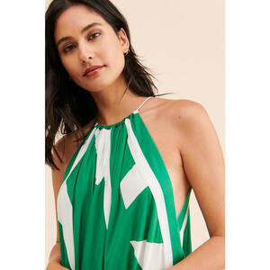 Anthropologie x Let Me Be - Stylish Green Abstract Halter Maxi Dress, size S