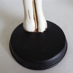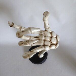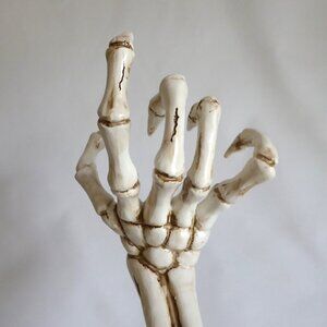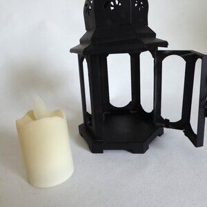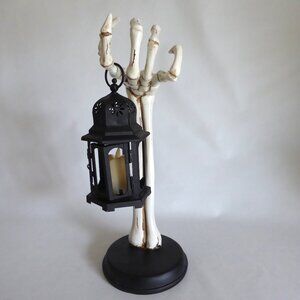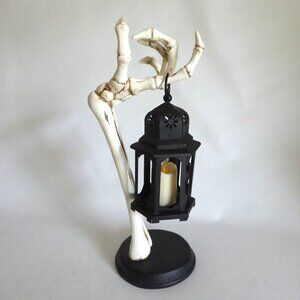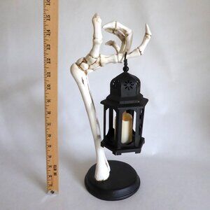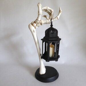 New, never used for its purpose, resin, skeleton arm holding a black metal / tin lantern, Halloween decoration. There is a small hinged door to access the candle in the lantern. BONUS: I have included a magic flickering candle so you do not have to use an actual flame. (See photos for details) I am the original owner. It has been in climate controlled storage since purchased. Comes from a pet and some free home.