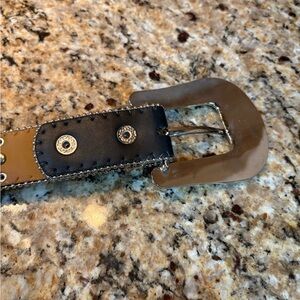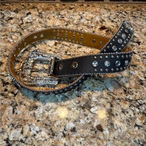 Nocona Leather Belt Rhinestones Mustang Horses Buckle Bling Black Silver 24