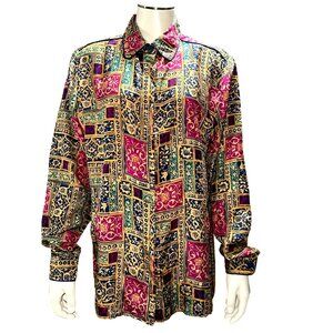 Anna And Frank Medium Vintage Multicolor All Silk Button Down Long Sleeve Shirt