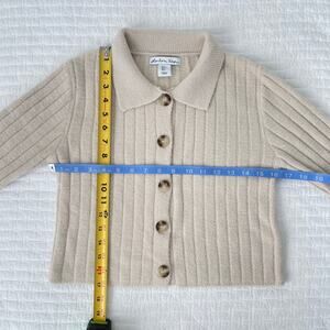 New London Kaye Long Sleeve Cropped Button Up Knit Sweater Top Cream Tan Size S