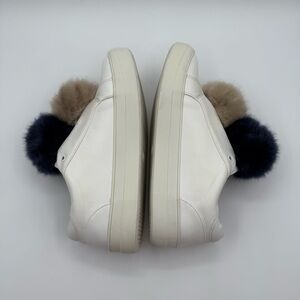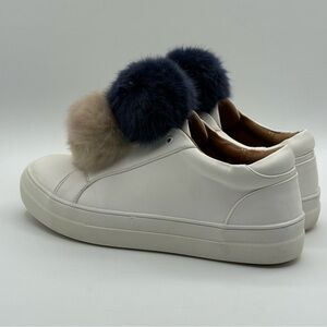 Mossimo Supply Co. Abbie Leather Slip On White Sneakers With Faux Fur Pompom