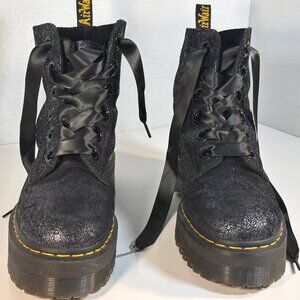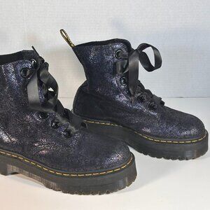 Dr Martens Black Iridescent size L-10, New Molly boots with a Thick Platform & six oversize