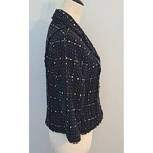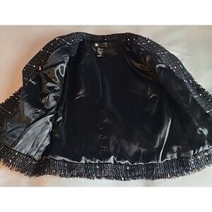 Carole Little Silk Blend Boucle Fringe Blazer Jacket Womens Petite S Career Vtg