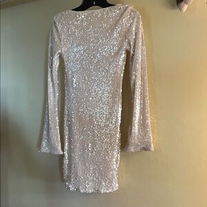 Wild Fable bell sleeve fully lined Cream Sequin Long Sleeve Dress