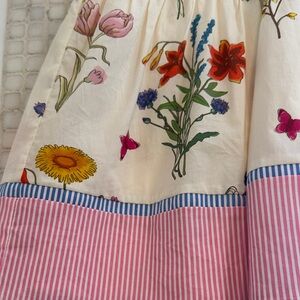 Stylish THML Dress with floral design. Features a V-neck and striped trim. Length 39” Pit to Pit 28”