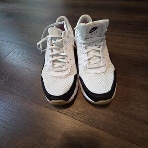 Trendy Nike sneakers with a bold leopard pattern.. See small dark spot of the top of the shoe it is hard to notice.