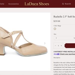 LaDuca character heels, well-worn but still in excellent condition. Probably danced in them a total of 30 times, only in clean dance studios, never outside. 2.5" heel height, soft sole for great articulation. If you're a dancer in the professional musical theatre world, you KNOW these are the shoes to have!