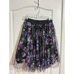 Women's Torrid Plus 1X Black Purple Floral Mesh A-Line Skirt