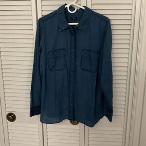 Sophisticated black blazer with a classic cut. Single-button front. Perfect for professional settings. 14W. Bust 44”, length 25”.