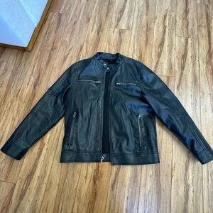 Nothing is cooler than a black moto jacket. In excellent condition, worn once. Quality, heavy leather construction with silver hardware.