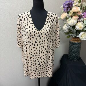 DKNY XL Leopard Print V-Neck Blouse Tan & Black. XL