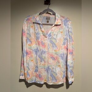 When hanging & tied it was a comfortable 14.5” pit to pit.