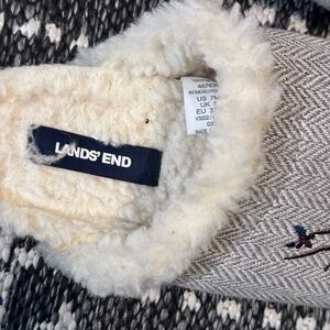 Lands' End Gray Slippers Holiday Sherpa Lined Red Cardinal Bird Christmas