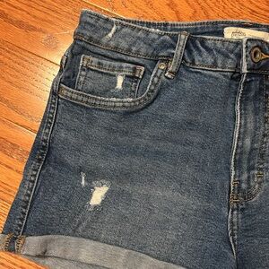 Trendy light blue jean shorts from Zara Authentic Denim By Trafaluc TRF! Cuffed, slightly distressed style, and perfect for casual wear. Features a classic 5 pocket zip fly denim design. Has belt loops. Cotton / elastane blend for a stretchy, comfy fit. Pairs great with cowgirl boots