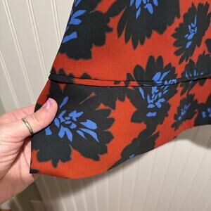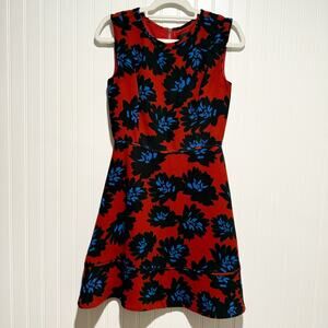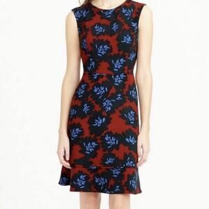 J Crew Red Blue Crepe Floral Knee Length Dress Size 2