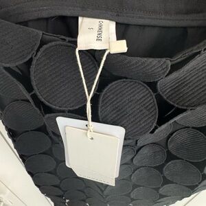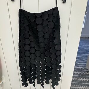 Stylish black midi skirt with unique circular design. Perfect for any occasion.