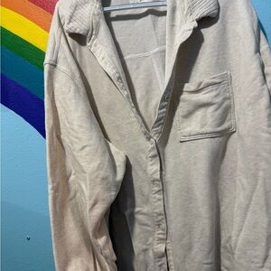 Chic and warm cardigan with polka dot pattern. Ideal for layering. Very cozy! Never met the inside of a dryer, no visible imperfections, excellent very gently used condition only because it’s a knit! Adorable cardigan