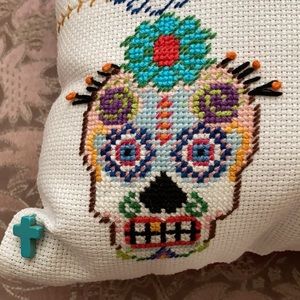 NEW hand sewn Sugar Skull pillow with button accents