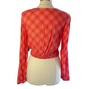 ❌SOLD❌NWT BP Nordstrom Faux Wrap Surplice Long-Sleeve Cropped Plaid Top, Medium