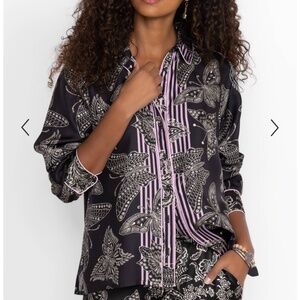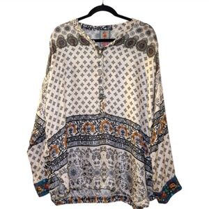 Johnny Was Russian nesting dolls silk tunic blouse XL