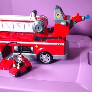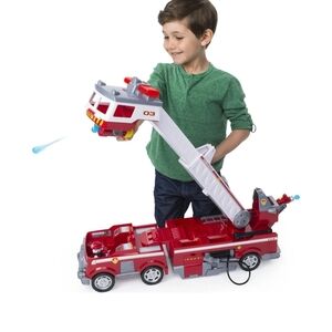 Save the day with Marshall's Ultimate Rescue Fire Truck! This vehicle is equipped with an extendable 2 ft. tall ladder, flashing lights and sounds. Includes: 1 Ultimate Rescue Fire Truck, 1 Mini Fire Cart, 1 Marshall Figure, 3 Projectile Launchers, 1 Ladder. Requires 2 AAA batteries.