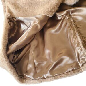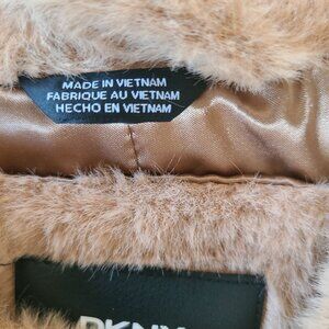 DKNY Women's Faux Fur Coat Camel Size XXL Beige Long Sleeve Button Up