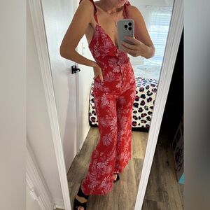 Elevate your style with this stunning floral red jumpsuit. Perfect for any occasion, it combines comfort and elegance effortlessly.