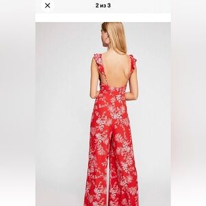 NEW FREE PEOPLE $128 RED COMBO BE THE ONE WIDE LEG JUMPSUIT, size 2