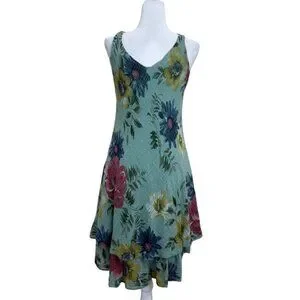 Colette Womens Sleeveless Dress Floral Ruffled Hem Fairly Garden Green Size XS