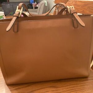 Brown bag , has some wear on the inside but not noticeable unless you’re really looking . This would be a great laptop case , diaper bag or even a good work tote . Looks high end and cute . Comes with original dust bag as shown in pics .