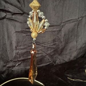 Set of 3 decorative Hanging Christmas ornaments in gold, amber and white. Range from 6”-7”