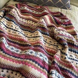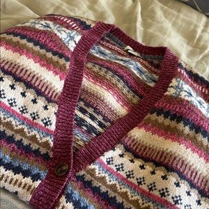 Stylish Sundance cardigan with a vibrant pattern. Features a mix of colors for a bold look. Perfect for layering. Would fit S/M