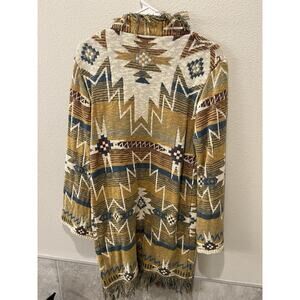 Blue B Aztec W/ Fringe Open Cardigan Size S. Cream, Tan, Blue.