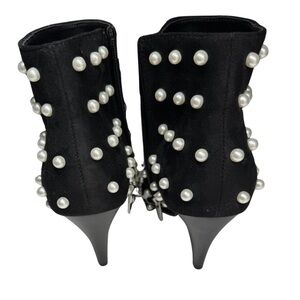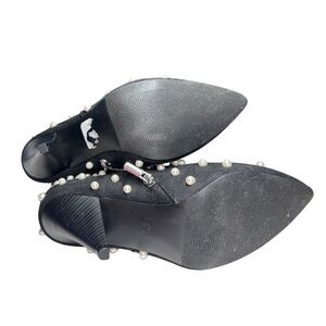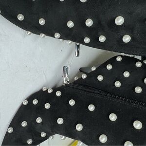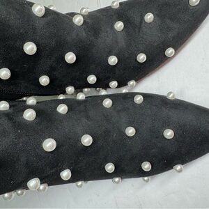 Elegant Black heeled faux suede Ankle Boots Pearl embellished Accents 10 NWOT