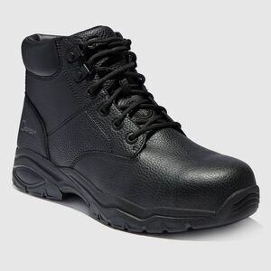 Stay protected in comfort and safety you can depend on with the classic S Sport by Skechers Men’s Elton Steel Toe Boot. This lace-up work mid boot design features a leather and synthetic upper with a steel safety toe front, Skechers Memory Foam cushioned comfort insole, shock-absorbing midsole and traction outsole.